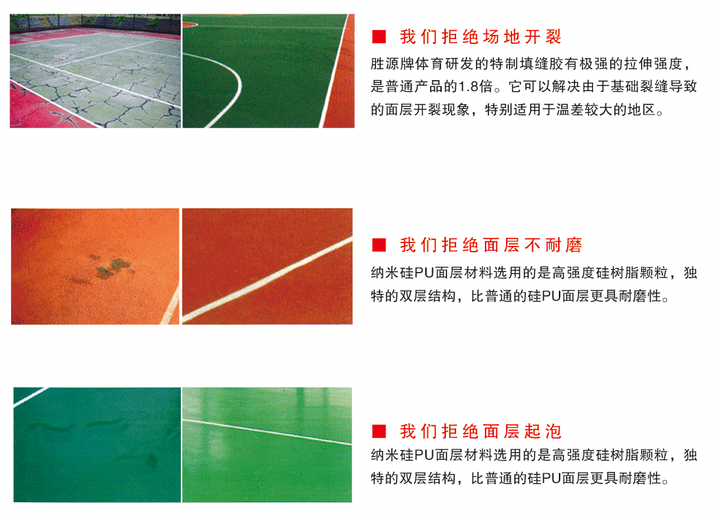 环保型硅PU系由水泥基础界面、修补层、弹性层、面涂料组成的弹性运动涂料系统,单组分直接涂刮,不同的施工厚度,可以得到不同弹性的涂层该涂层有持久的弹性,对水泥地面和沥青地面都有优异的结合容易刮涂,干膜耐侯耐水优异。